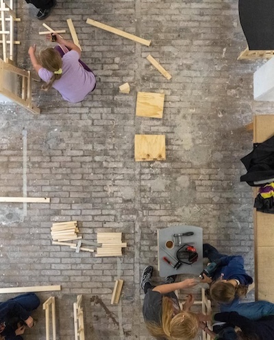Adorable stools built by kids in the neighborhood via 'Maak je Eigen Stool' workshops