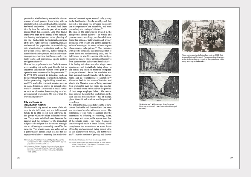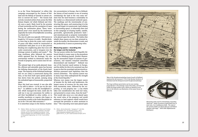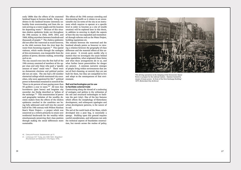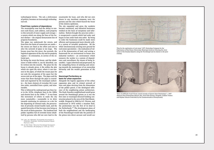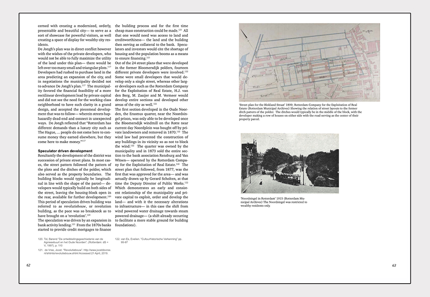 This is done by illustrating a case study of the creation of the urban district of the Oude Noorden in Rotterdam, as it transformed into poldered parcel plots and then to housing blocks in the late 19th century, on the periphery of a rapidly expanding colonial port city.