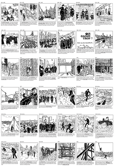 We examined the embeddedness of political processes of production into the landscape itself. Following lines of: the mechanisms and structures of coal mining, geological formations, violence upon workers bodies, transporation flows, dispossession of land and agency, and construction of a waste landscape of spoil tips, or terrils.