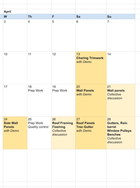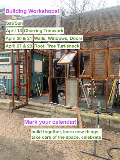 This time we will REALLY structure the building around a series of workshops (with a schedule!) that also serve as mini educational demonstrations, sprinkled with slow-down moments for collective discussions about how to use or adapt the space we will now have.