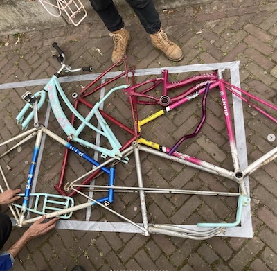 After collectively designing the layout of the fence and dismantling the old bikes, the volunteers shared skills in workshops about welding and the safe use of an angle grinder.