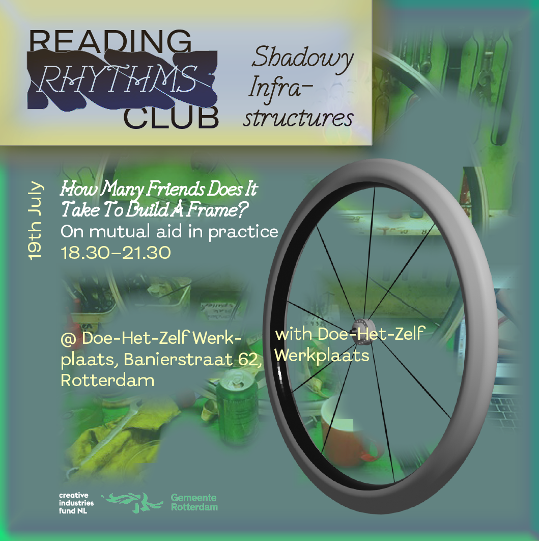 We welcome you on Friday July 19th from 18.30 to 21.30 at the Doe-Het-Zelf Werkplaats, Banierstraat 62, a free-to-use, volunteer-run workshop space and community garden in Rotterdam Noord. We will be reading a zine collectively assembled by the volunteers of the DHZ with excerpts of texts that relate to different conceptions of mutual aid, accompanied by reflections from each volunteer on the work they do at DHZ. During our conversation, we will map out different ideas, interests, and values linking to mutual aid, as well as the difficulties and joys of its practice.
