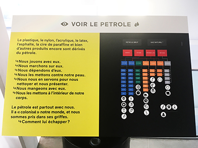 This was shown through a historical timeline of oil and Dunkirk port, a researched video, diagrams of the refining process as well as everyday objects consisted of oil that might surprise young visitors.