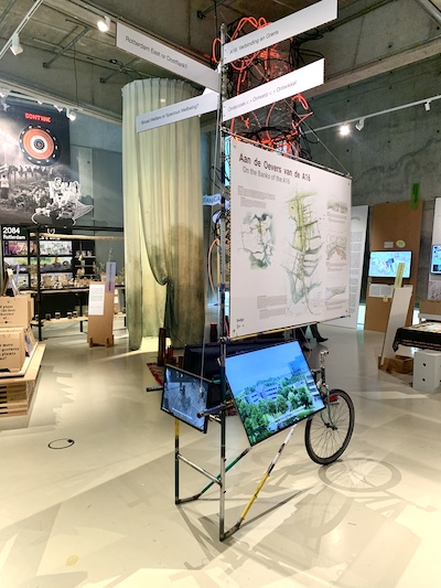 As the Biennale's focus on regenerative and ecological practices that can refocus the discipline of architecture, the curatorial team reached out to Doe-Het-Zelf Werkplaats to construct an exhibiting sculpture from recycled bicycle frames. Atelier A16 is mobility design-research into the possibilities within the reconstruction of the former ring-road, now city-cutting highway, for wider scopes of mobility, neighborhood porosity and localized ecological networks for human and animal movement alike.