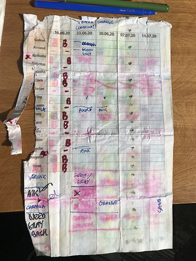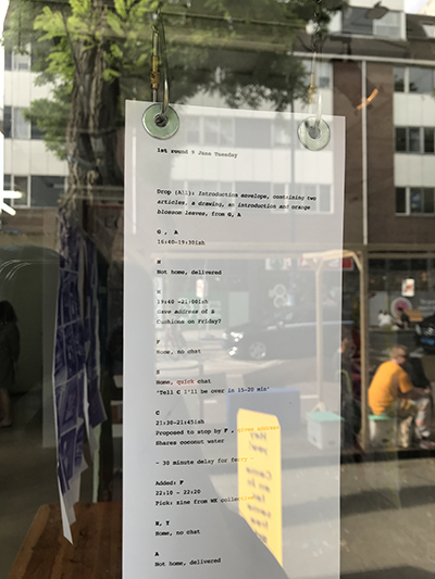 We kept a messenger log but forgot everything else. Some messages were widely shared, some others were a private matter between two people, so if an exhibition is generally understood to make something visible to a public, we were sharing only enough of a glimpse (log extracts) so you can go do it with your friends in some completely different way :) “We're telling all of you but we're not telling anyone else." (HaMo)