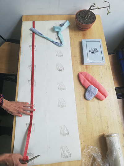 In advance of the Fictioning Comfort exhibition, curated by WorkNot!, a bike messenger network was established to deal with the very new effects of covid lockdown. The messenger round was intended to ‘bring the exhibition’ to the homes of the various artists and others connected with the exhibition, and also to distribute notes, care packages and self-made publications. It added another layer onto an exhibition about over-work, precarity and the blur of home/office, work/leisure and where is intimacy.
