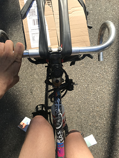 Delay in the sense of prolonged standby, with your friends, at the square, drinking on the job, for fun and for ourselves. A disrupting of pace, and an embrace of community — not disobedient without cause however, but accumulating and sharing specific knowledges of the many logistics of package delivery, bikes and exploitative mechanics of distribution, through disobedience.