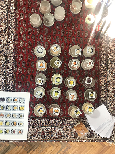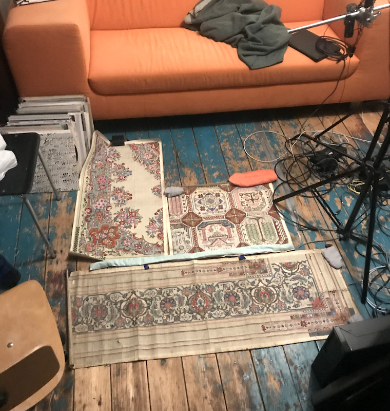 For the six weeks preceding the opening of Fictioning Comfort zines, cushions, snails, toilet paper, ceramic tiles, letters, fabrics, moldy food and many more 'gifts of care' were exchanged through a cycle of artists and friends by a bike messenger twice a week. Seen both as a prelude and a parralel to the exhibition, some pieces overlapped, but many did not. Partially in response to covid-19, the bike messenger round enacted, among many things, a politics of kinship, friendship, care, intimacy and gifting exchange. Some items were shared with everyone, others were a private matter between two people. And not only for that reason the question comes of how, or if, the round should be presented.