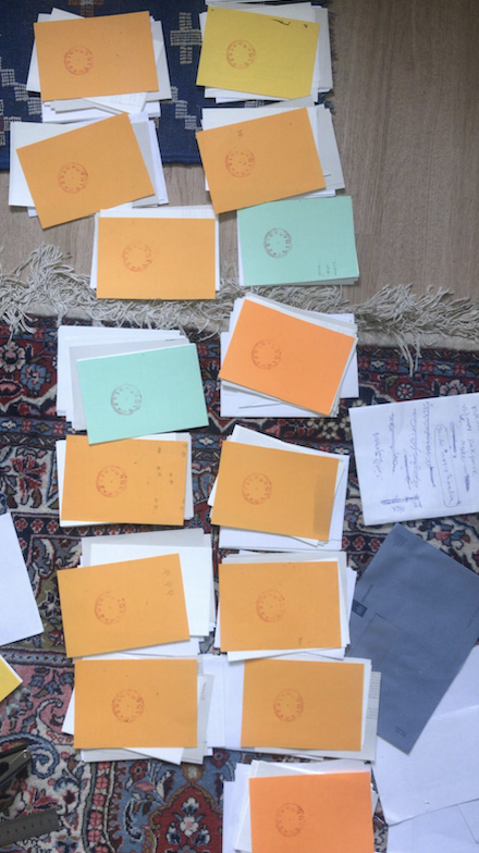 If an exhibition is to make visible something to a public, then you could say that the messenger round is a sort of anti-exhibition. And you could almost also say that it's not really a project either, but simply something that is happening. Why must everything be so visible? And documented? For whom and for what ends? We also struggle to define how it works, even more so to communicate it. Not because we don't know, but because we would have to show you, by inviting you in. The round doesn't obey strict protocols, but engages in a constant re-assessment/re-making of operations playing out as things go. People get added to the cycle, wider variety and sizes of things are distributed, stays and conversations extend and contract (until 4 am sometimes), the route alters, things are 'stolen' and shared to 'outsiders' and so on.