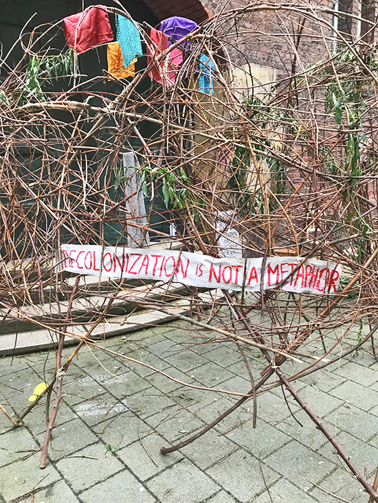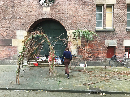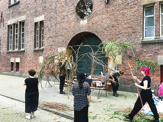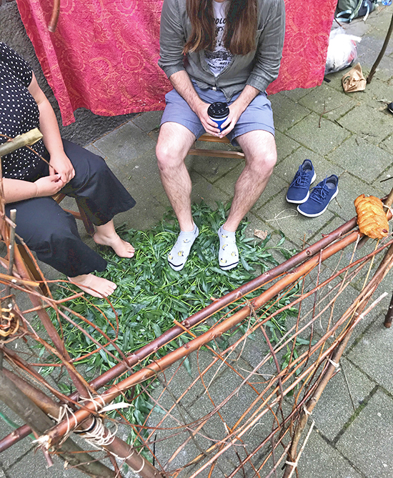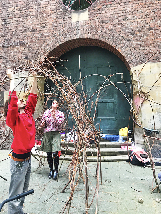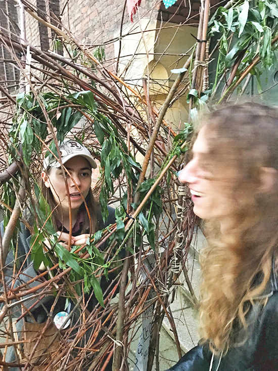 Continuing the pressure and occupation from our roles as teachers and co-organizers of an assembly to generate demands to the administration, we initiated a nest at the threshold of the academies front doors— a labyrinth of willow branches that extends the hospitality of the school beyond the doors that regulate who can say what where.