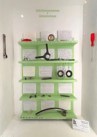 The ‘Doe-Het-Zelf Werkplaats’ is a free-to-use, collectively run workshop space and community garden in Rotterdam Noord operated by volunteers. Visitors to the workshop come to fix their own bikes with tools and spare parts that have been donated. Centered around Learning Together and anti-judgement, previous knowledge of bikes or tools are not at all necessary and the volunteers are always there to work together with visitors; building new relations by sharing in problem solving, reciprocal generosity and mutual empowerment.
