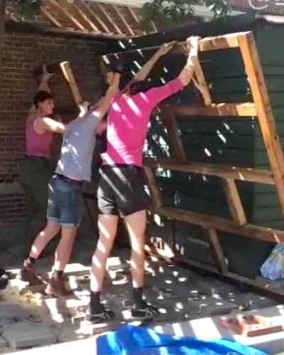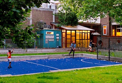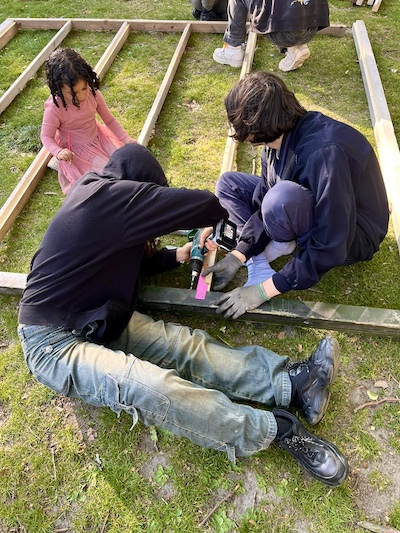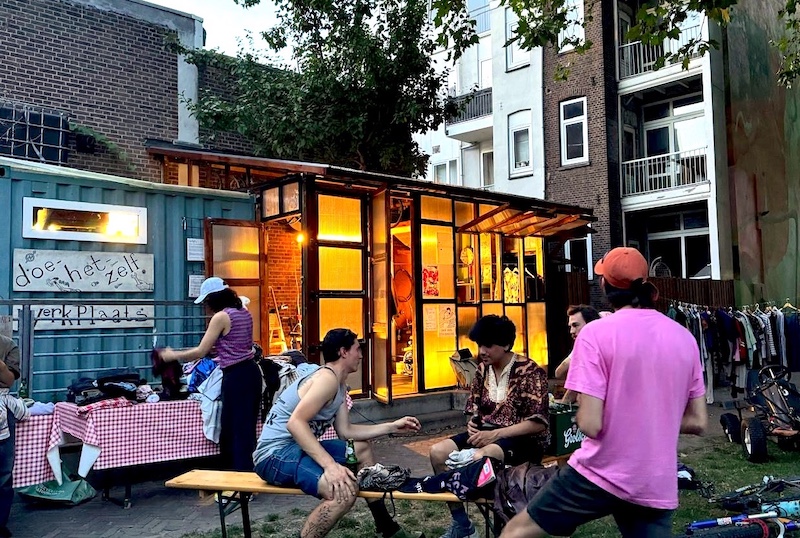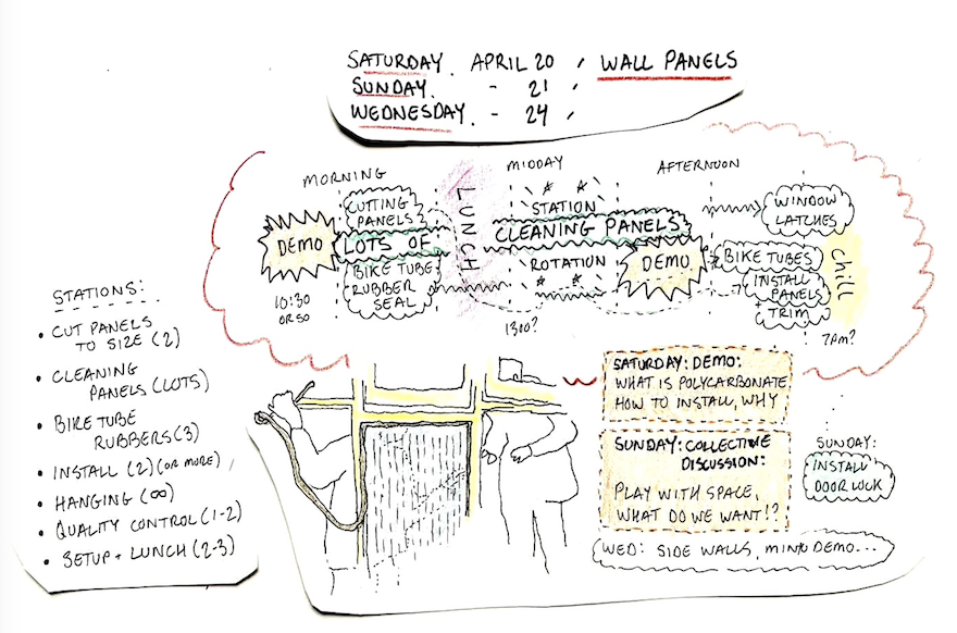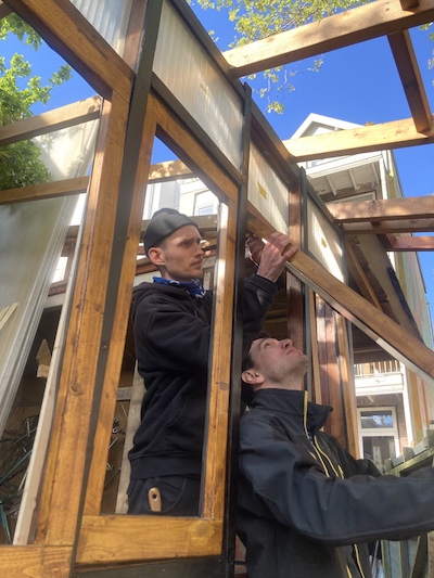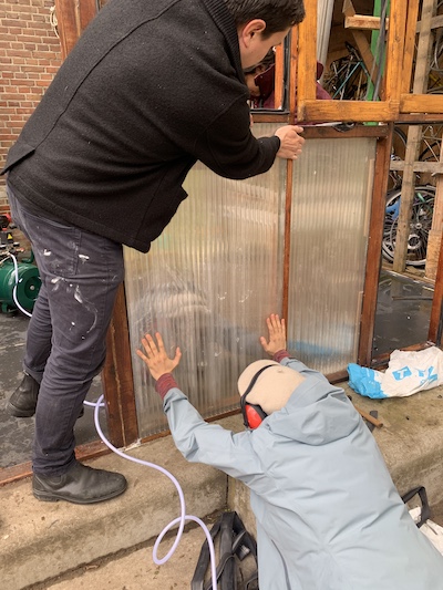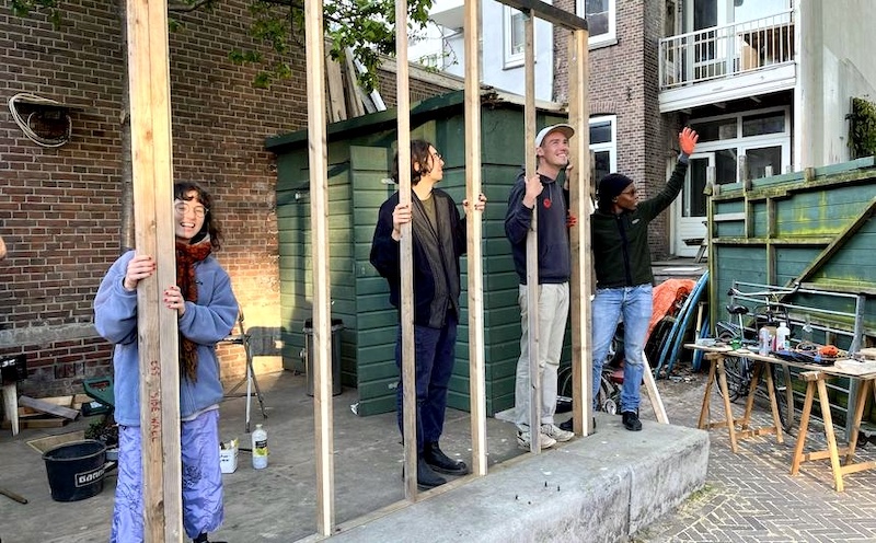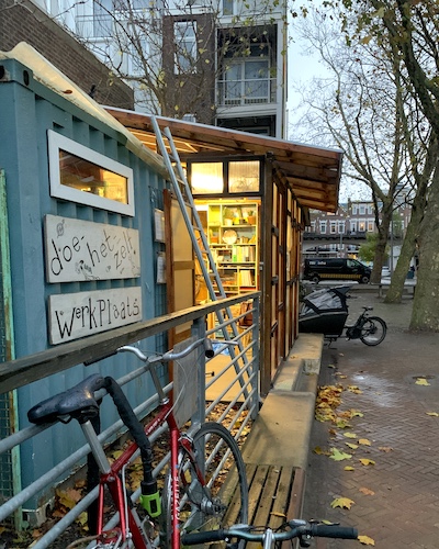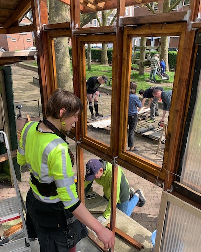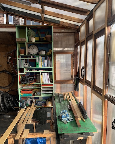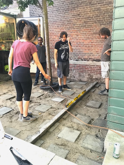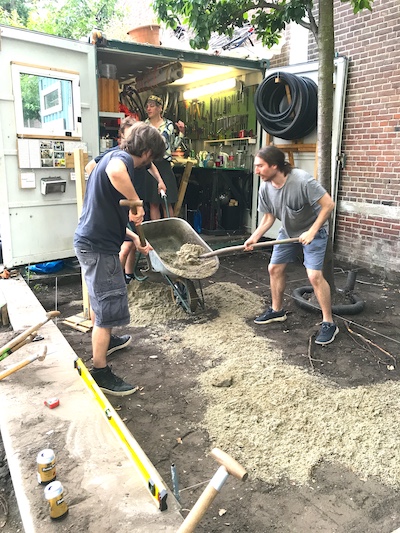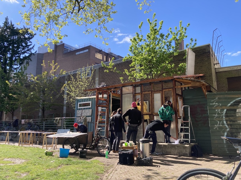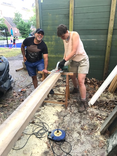 This corner of the park was set aside via Stad in de Maak for community gardening in 2014, which we took over and slowly and collectively built this extension mostly with found material, on our own initiative. Last fall we asked the Wijkraad to fund the last stage on account of the valuable and well maintained community resource the space has become; essentially legalizing the space, and securing our place rent free on public land, for hopefully years and years to come."