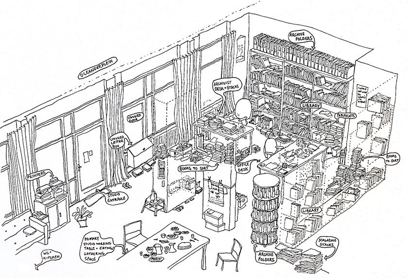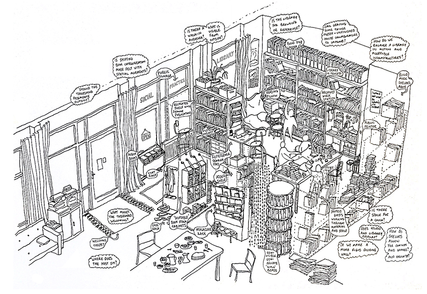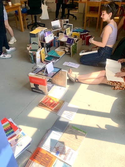 People visiting the studio started to browse through it and borrow them (if you still have one, bring it back 🙃). The SPL is a collection of materials that overlap art, politics, urban planning, architecture, economics, philosophy, and activism-creating easy engagement between topics that all connect to social practice."