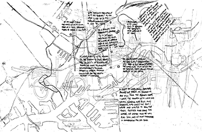 a shared desire for refuge from the individualist/anxiety-inducing graduation studio structures and a shared refusal towards the directive to make fixed plans, produce visual contracts and determine the event before its unfolding through ‘a projection’; which is almost always the path and call to order enforced by the discipline of architecture.